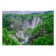 Oil painting of big waterfalls in Plitvice lakes national park, Croatia. Cascade of two big waterfalls in summer. Mountain forest waterfall landscape.