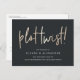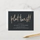 Need to change your wedding date? Notify guests with this modern and lighthearted postcard featuring "plot twist!" in faux gold foil handwritten lettering on a rich, soft black background. Personalise with your names and new wedding date beneath in white lettering.