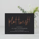 Need to change your wedding date? Notify guests with this modern and lighthearted card featuring "plot twist!" in rose gold foil handwritten lettering on a rich, soft black background. Personalise with your names and new wedding date beneath in white lettering.