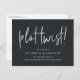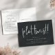 Need to change your wedding date? Notify guests with this modern and lighthearted postcard featuring "plot twist!" in faux silver foil handwritten lettering on a rich, soft black background. Personalize with your names and new wedding date beneath in white lettering.