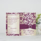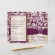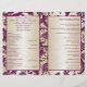 This 8.5"x11" plum and champagne damask wedding program has a faux ribbon with crystal jewelled brooch on it. It matches the invitation shown below and is fully customisable. It is designed to be folded down the centre. All the text is customisable. Email niteowlstudio@gmail.com if you need any assistance with the customisation of this, or if you have any questions or requests. ****PLEASE NOTE that the higher grade paper is a card stock and does not fold well.