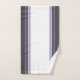 The charcoal grey background and centre frame can be changed to any colour on this modern and stylish bath towel set, decorative design with a greys, plum and white stylish stripes, text can be added to personalise for yourself or a beautiful gift.
