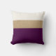 This modern colour blocked pillow features purple, faux gold leather and white stripes.