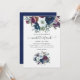 White, blue and bordo watercolor roses and peonies floral Mr. and Mrs. wedding invitation with elegant handwriting typography customisable to your event specifics.