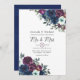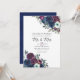White, blue and bordo watercolor roses and peonies floral Mr and Mrs wedding invitation with elegant typography customisable to your event specifics.