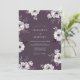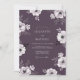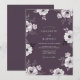 This design features a rich, deep plum backdrop that sets a moody and sophisticated tone for an evening event. Delicate white anemones and wispy foliage are scattered elegantly across the layout, creating a soft contrast against the dark background. The colour palette of plum, charcoal, and ivory evokes a sense of timeless romance perfect for an autumn or winter affair.