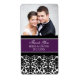 Elegant Wedding thank you custom photo template labels in stylish dark purple, black and white with classic and romantic floral vintage damask pattern, the perfect addition to your wedding, available in a wide selection of matching wedding products. Perfect for wedding favours or wedding wine bottle labels.
