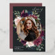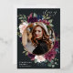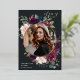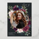 Our Plum Blossom graduation announcement frames a photo of your graduate with an elegant round border of lush watercolor foliage and flowers in blush pink, burgundy plum purple and dark dusty blue, with real rose gold foil trim on a rich charcoal background. Personalise with your graduate's name, class year and school. Add a personal message to the back, along with an additional photo.