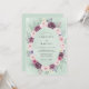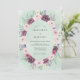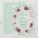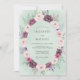An elegant design featuring a lush wreath of plum-coloured roses and soft pink blossoms. Delicate lavender sprigs and verdant leaves create a romantic, classic aesthetic, perfect for a sophisticated affair.
