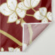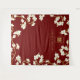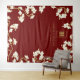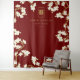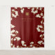Oriental peach / plum blossoms, spring flowers in white and gold on a dark burgundy background with a simple minimalist rectangle double happiness symbol wedding photo backdrop / photo booth / photo prop tapestry. An elegant and romantic floral chinese themed wedding design which is whimsical, modern and classy.