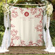 Oriental peach / plum blossoms, spring flowers in deep red and ivory with a simple round double happiness symbol wedding photo backdrop / photo booth / photo prop / party decor tapestry. An elegant and romantic floral chinese themed wedding design which is whimsical, modern and classy.