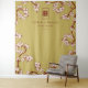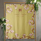 Oriental peach / plum blossoms, spring flowers in ivory white/cream and dark burgundy on a gold background with a simple minimalist rectangle double happiness symbol wedding photo backdrop / photo booth / photo prop tapestry. An elegant and romantic floral chinese themed wedding design which is whimsical, modern and classy.