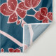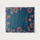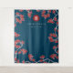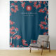 Oriental peach / plum blossoms, spring flowers in red, light pink and dark navy blue with a simple round double happiness symbol wedding photo backdrop / photo booth / photo prop tapestry. An elegant and romantic floral chinese themed wedding design which is whimsical, modern and classy.