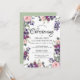 A deep dusty plum purple floral has beautiful blush pink rose accents. Lots of greenery, leaves and vines keep it open and airy. Christening is written in a flowing script. The baby girl's name is written in classic serif lettering. The back of the invitation is soft sage green with just a hint of a floral pattern. This beautiful christening template is very easy to customise.