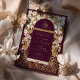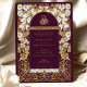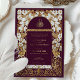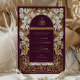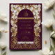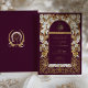 Experience the allure of tradition with this Islamic wedding invitation, showcasing the rich and royal plum burgundy backdrop paired with the lustre of antique gold accents. The front design is a magnificent tapestry of gold floral motifs and elegant arches, highlighting the sacred Bismillah in exquisite Arabic calligraphy. The invitation's back is tastefully adorned with a golden monogram, set against the deep burgundy hue, encapsulating the essence of the couple's initials. This beautiful card is an ode to the grandeur of Art Nouveau and the deep-rooted cultural heritage of Islamic art, perfect for inviting guests to a wedding that promises to be as timeless as the design itself.