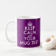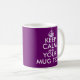 Plum colour Keep Calm Mug | Customise text template. Cute keepcalm gift idea for men and women. Customise background colours ie blue. Create your own funny KeepCalmandCarryOn parody. Simply edit the text of this template to make a unique design. Popular carryon quotes: Keep calm and drink tea. Keep calm and love me. Keep calm and drink coffee. Personalised mugs are a great gift idea for friends and family.