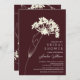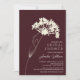 Beautiful bridal shower invitation featuring a cream flower stem set on a plum wine background. The back features an elegant coordinating floral back for an extra special touch.
