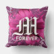 Mediaeval Renaissance Gothic Magenta Pink and Plum Purple Personalised Fuchsia Gerber Daisy Damask Monogram Wedding Date Anniversary Pillow - How Romantic to have your Monogram and Wedding Date on a Pillow with the Sentiment Forever - makes for the perfect romantic master bedroom.