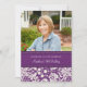 Custom photo 70th Birthday party invitations in elegant dark purple, cream and white classic floral damask vintage pattern. Add your name, photo, and party details for a unique and stylish birthday party invitation.