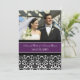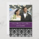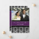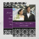 Elopement announcement photo cards in elegant eggplant dark purple, black and white floral damask pattern, fully customisable with your names, wedding photo and wedding details, the perfect way to announce that you have eloped to friends and family. Available in a wide range of matching wedding products.