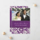 Plum Damask Photo Just Married Announcement Cards