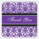 Wedding Thank You envelope seal stickers in elegant dark purple, black and white classic floral damask vintage pattern, delicate and pretty.