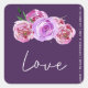 Elegant dark purple wedding sticker with blush lilac violet botanical peony flowers and your wedding details / custom text. Please note that the background colour is editable. You can change it after selecting CUSTOMIZE option.