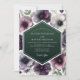 This design exudes a dramatic and romantic elegance for a sophisticated union. A lush arrangement of painterly anemones in shades of deep plum, lavender, and pale ivory creates a stunning botanical display. These beautiful blossoms contrast beautifully with the rich, dark emerald green element. The moody yet enchanting atmosphere is perfect for a timeless occasion.