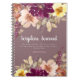 A beautiful scripture journal featuring rich watercolor flowers in plum/deep purple, pinks and yellow and green leaves, on a muted purple background. The title is in white brush lettered style font which is editable. Underneath an editable Bible verse. Personalise with your name. Makes a great gift for friends, mothers, sisters, pastor's wives and more.