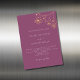 A modern, elegant and minimalist wedding invitation. A plum, purple background decorated with faux gold florals. Personalise and add your names and wedding details.