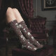 These fun feminine gothic socks are hand-drawn in black ink by Nathalie Portet, featuring whimsical skulls and blush pink and cream roses and spiderwebs. Dark plum background.