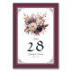 Plum, grey, copper and dusty rose floral wedding table number card customisable to your event specifics.