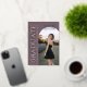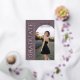 This plum photo graduation announcement features timeless serif typography paired with a modern, editorial layout for a rich and sophisticated look. Soft ivory lettering and rose gold foil accents highlight the graduate’s name, class year, and school while allowing the main photo to remain the focal point. Fully customizable, this design lets you personalize all text details and upload your own image on the front. The coordinating back includes a matching plum background with a four-photo collage template, perfect for additional senior portraits. A refined graduation announcement designed for those who love deep purple jewel tones, classic design, and elevated modern styling. © Kimbellished, LLC