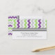 Salon, event planner or spa appointment business cards in elegant and vintage chevron zigzags stripes pattern in purple, green, grey and white. Customisable with your contact details, stylish and contemporary. Contact us for a custom colour.