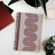 Created to coordinate with the "Lombard" art and stationery collection, this spiral-bound notebook was inspired by San Francisco's Lombard Street, which is known as the "Crookedest Street in the World." The notebook features 7 plum-colored lines arranged in a winding pattern, and placed over a beige background. There is space for the customer's name on the bottom-right side, and the phrase "Daily Notes" appears in the top-right corner. This text can be customized or removed altogether. The back of the notebook features a coordinating wavy line pattern. The design is minimalistic, yet bold, and would be a perfect gift for men and women alike.