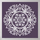 This white mandala sits on a plum background. The colors are very sophisticated. Part of the Rosenn Mandala Collection.