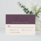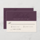 A classic elegant design with a modern edge, this simple minimal wedding response card features beautiful calligraphy script monograms of the bride and groom on alternate corners on the back of the card. Personalise the text template with your required RSVP date and the bride and groom's monogram initials on the back side. You may move your initials slightly left or right, up or down to accommodate their best display in this design format. The monograms look best when they run slightly off the edges. Shown here in autumn plum purple and ivory beige with calligraphy initials on the back.