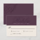 A classic elegant design with a modern edge, this simple minimal wedding response card features beautiful calligraphy script monograms of the bride and groom on alternate corners on the back of the card. Personalise the text template with your required RSVP date and the bride and groom's monogram initials on the back side. You may move your initials slightly left or right, up or down to accommodate their best display in this design format. The monograms look best when they run slightly off the edges. Shown here in autumn plum purple and ivory beige with calligraphy initials on the back.