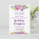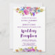 This plum monogram backing wedding reception invitation is perfect for a floral theme wedding. The design features bright magenta, pink, plum purple and blue flowers, and a lovely bold script font. Personalise the front with your wedding details. Personalise the floral wreath backing with the initials of the bride and groom.