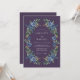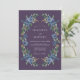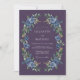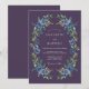 This design showcases a deep plum backdrop adorned with navy blue roses, sage eucalyptus, and golden foliage. The moody colour palette evokes a sophisticated atmosphere with a mysterious, ethereal touch. Rich botanical elements are meticulously arranged to create a lush and artistic aesthetic.