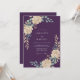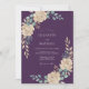 A deep plum backdrop sets a moody and romantic tone for this floral design. Delicate cream roses are paired with soft teal and sage leaves in a painterly watercolor style. Subtle tan foliage accents provide an earthy contrast to the rich, dark colour palette. This botanical aesthetic is ideal for an elegant evening affair.