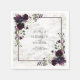 Create the perfect reception setting with this trendy napkin design featuring plum purple and eucalyptus floral botanical elements, faux gold dust corner elements, plum purple frame and faux carrera marble background. Perfect for fall and winter weddings. Copyright Elegant Invites, all rights reserved.