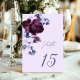 Plum Purple & Indigo Blue Elegant Floral Wedding Table Number