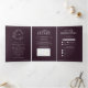 Plum Purple Leafy Crest Monogram Wedding Tri-Fold Invitation