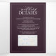 We're loving this trendy, modern plum purple Trifold invitation simple, elegant, and oh-so-pretty, it features a hand drawn leafy wreath encircling a modern wedding monogram. It is personalised in elegant typography, and accented with hand-lettered calligraphy. Finally, it is trimmed in a delicate frame. To remove meal choices in the RSVP section, we have created a how-to video for you here: https://youtu.be/ZGpeldQgxoE. A Wedding Details contains extra details like, driving directions, reception information, hotel information, etc. This can also include your wedding website including provision for a map (via screen capture) has been included, and even your favourite engagement photo on the back! Veiw suite here: