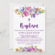 Plum Purple Pink & Blue Flowers Baptism Invitation