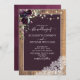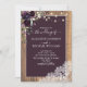 Plum Purple Rustic Wood Lace Script Wedding Invitation