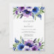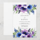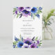 This design showcases a vibrant array of watercolor anemones in shades of plum purple and royal blue. Lush sage green leaves and delicate foliage accents create a rich, botanical aesthetic perfect for a romantic spring or winter event. The painterly style offers an elegant and artistic feel with a bold, cool-toned colour palette.