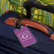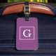Plum Purple White Framed Initial Monogram Luggage Tag