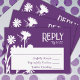 Plum purple reply card with white wildflowers can easily be personalised for your event. Botanical artwork can be colour changed along with your lettering. Unique enclosure card is versatile for birthdays and weddings. Simple solid colours are versatile for berry, violet, plum, purple, raspberry colour palettes.